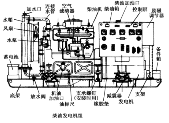 ① 基本型發電機組。具有一般的控制功能及簡 單的保護措施,且多是手動調節運行狀態,一般作 為主電源或備用電源。