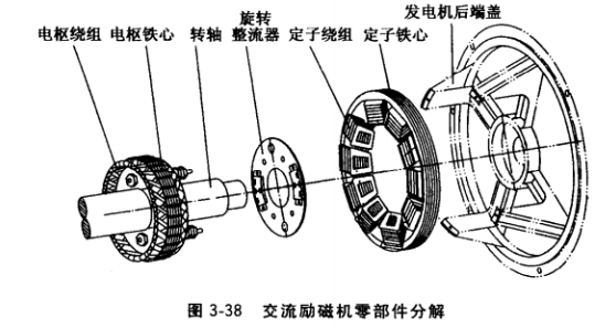 (1)電樞。包括電樞鐵心、電樞繞組、三相旋轉整流器。