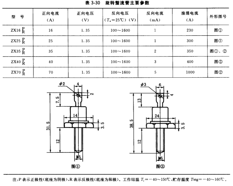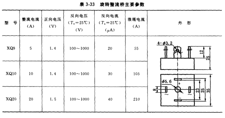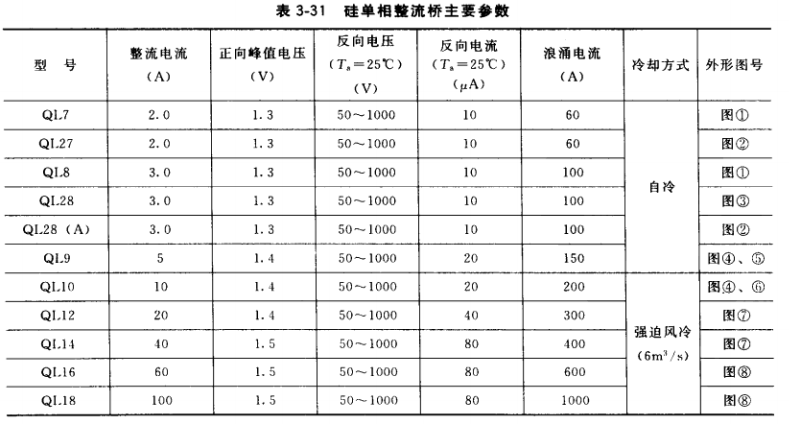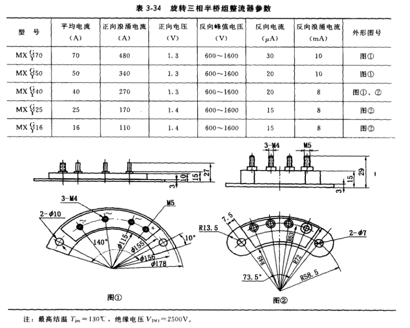 (7)旋轉三相半橋組整流器主要參數見表3-34。