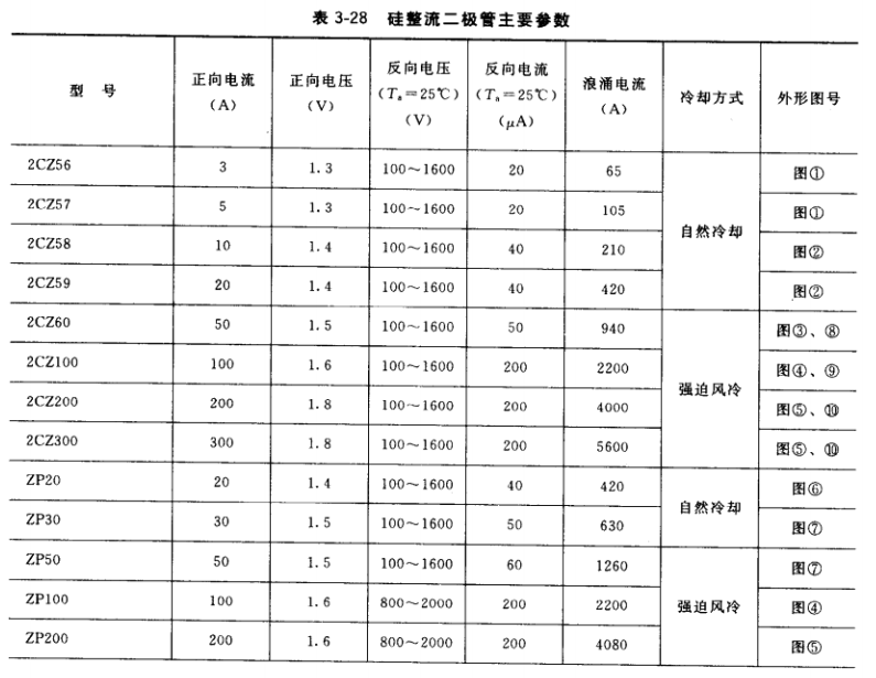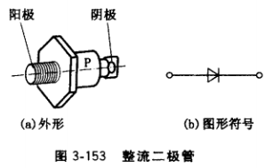 整流二極管有正、反極性兩種結構,正極性的底座為陽極,引線端為陰極,外殼上常用P代號標識;反極性的底座為陰極,引線端為陽極,外殼上常用R代號標識。圖3-153是正極性整流二極管外形及圖形符號。整流二極管簡易檢測方法: