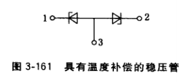 (3)穩壓管。普通穩壓管的簡易測試方法同整流二極管。具有溫度補償的穩壓管(如 DW7).有3個電極,如圖3-161所示,檢測時可將它分為兩個穩壓管,用檢測整流二極管