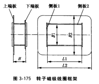 分體凸極式轉(zhuǎn)子繞組線圈框架制作:線圈框架一般均由玻璃纖維增強(qiáng)聚碳酸酯壓塑料壓制而成,但修理現(xiàn)場(chǎng)難以獲得壓塑料框架,一般可自制組合式線圈框架,其結(jié)構(gòu)見(jiàn)圖3-175。線圈框架由上端板、下端板、側(cè)板 1和側(cè)板2組合而成,各板均采用2?3mm厚環(huán)氧玻璃布板沖制或手工制作,框架各個(gè)尺寸按以下確定: