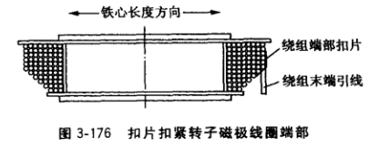(1)分體凸極式轉(zhuǎn)子繞組繞制,把線圈框架裝夾在繞線機(jī)的繞線架上,按設(shè)計(jì)規(guī)定 或?qū)崪y(cè)的每層排列匝數(shù)及層數(shù)繞線,排列應(yīng) 整齊、結(jié)實(shí),總匝數(shù)應(yīng)正確,末匝應(yīng)采用扣片扣緊(見(jiàn)圖3-176)。每個(gè)線圈繞線方向圖3-176扣片扣緊轉(zhuǎn)子磁極線圈端部應(yīng)統(tǒng)一。