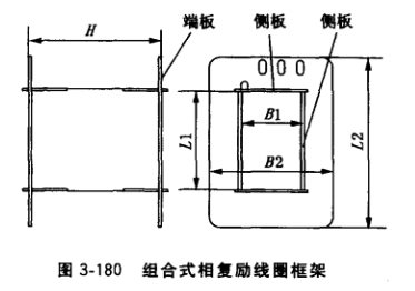 相復勵線圈框架有兩種結構,一種是整體式,由塑料絕緣材料壓制成型;另一種是組合式,由1.5~3mm厚環氧玻璃布板沖切成設計規定的3種形狀和尺寸的框架板組裝而成,如 圖3-180所示。前者成型性、外觀好,框架壁較厚(一般3~5mm),否則繞制線圈時框架端板容易斷裂。后者外觀稍不如前者,但壁較薄,且韌性好,端板不會斷裂,因而使用較多。