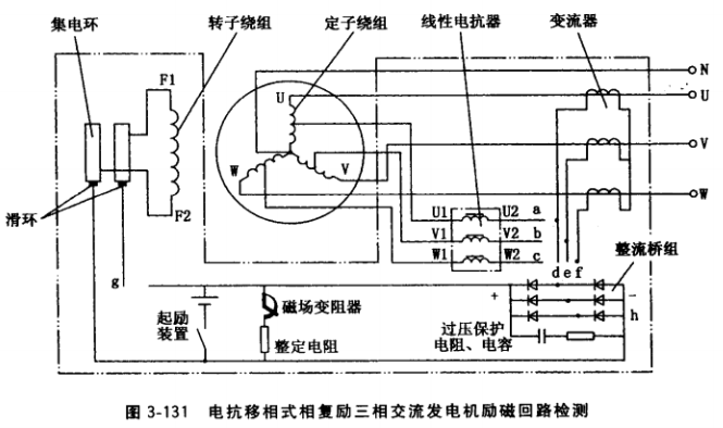 3.電抗移相式或電抗變流復(fù)合式相復(fù)勵三相交流發(fā)電機(jī)不能發(fā)電