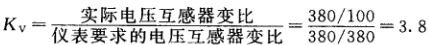 電流互感器變比為100/5。而儀表要求的電壓互感器的變比為380/380 (即無(wú)需電壓互感器),功率表電壓線圈接到電壓互感器二次側(cè)后,讀數(shù)需乘一個(gè)系數(shù)(電壓變比修正系數(shù))KV,