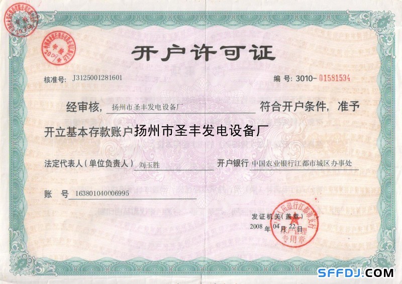 揚州市圣豐發(fā)電設備廠開戶許可證