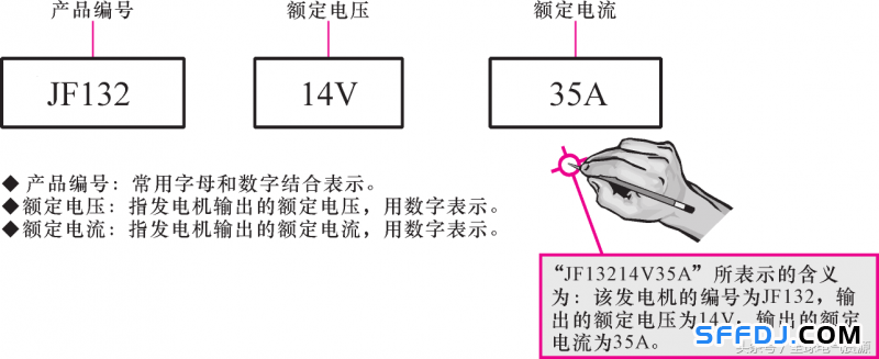 除此之外,有些發電機的型號較為直觀簡單,識別時較為方便,如圖6所示,其中包含有產品編號、額定電壓及額定電流等。
