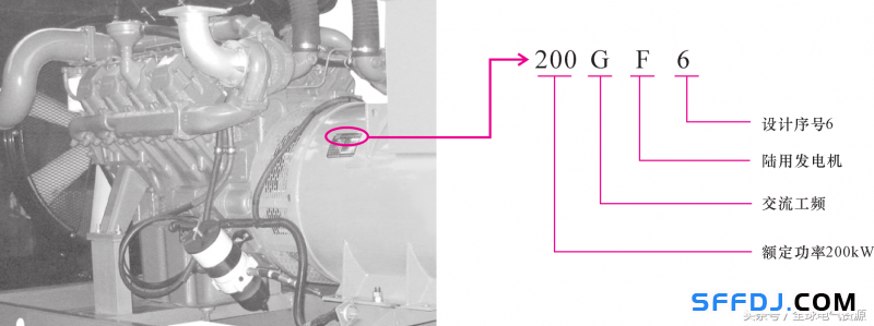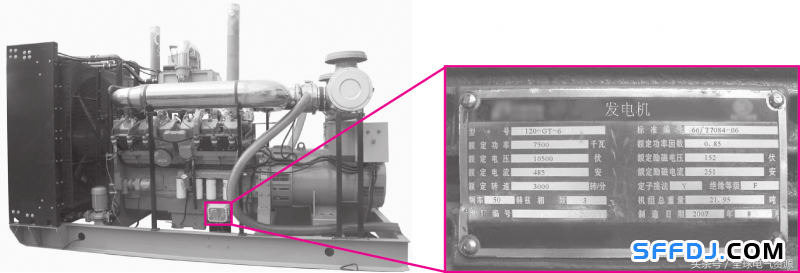 例如,圖7所示典型發電機的銘牌標識,從中可以了解其型號為“200GF6,參照上述命名方法可了解其型號所標識的含義。”