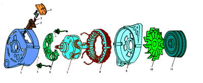 7-轉(zhuǎn)子 8-定子總成 9-前端蓋 10-風扇 11-皮帶輪